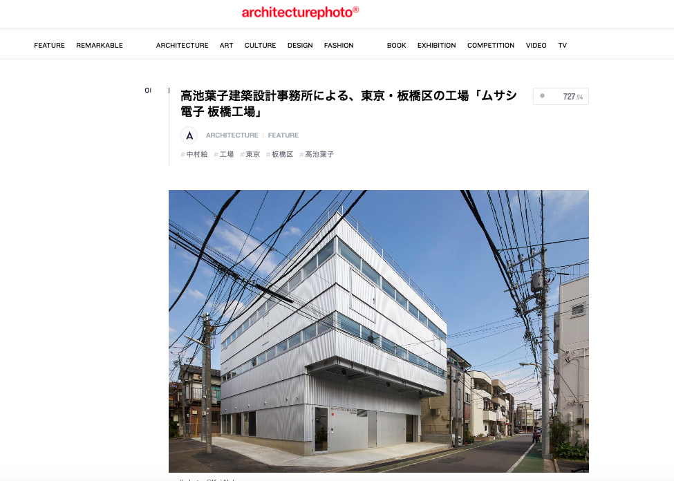 【NEWS】2019.9.2 UPDATE / 建築専門サイト”アーキテクチャーフォト”に「ムサシ電子 板橋工場」の紹介記事が掲載されました!