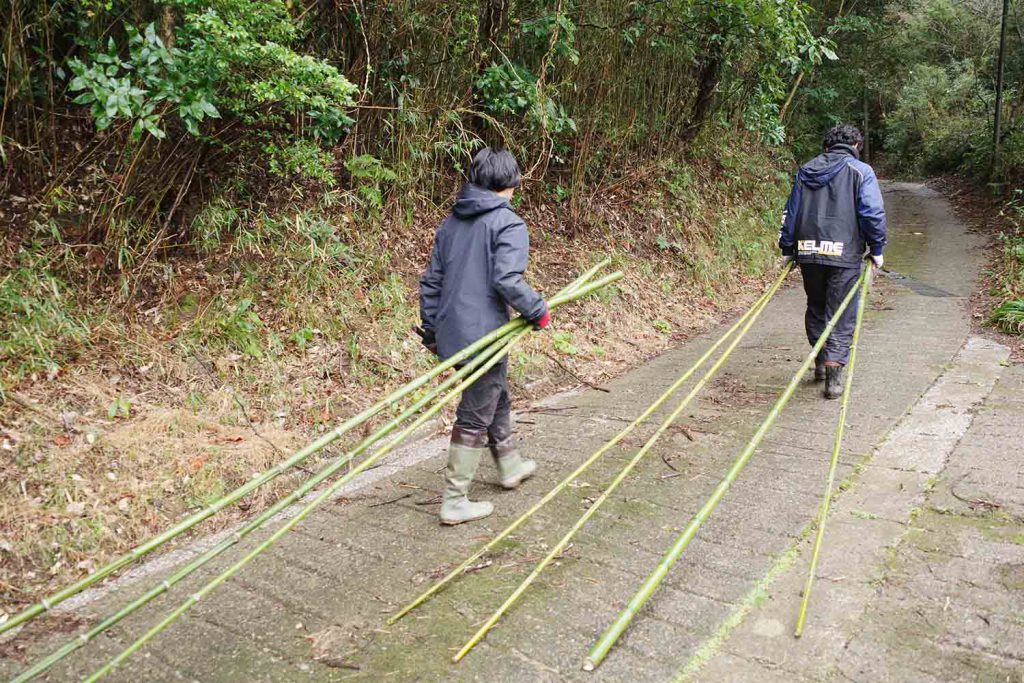 【NEWS】2024.4.2 update /「森の離れ」の棚で使う、竹伐採&油抜きワークショップをしました!
