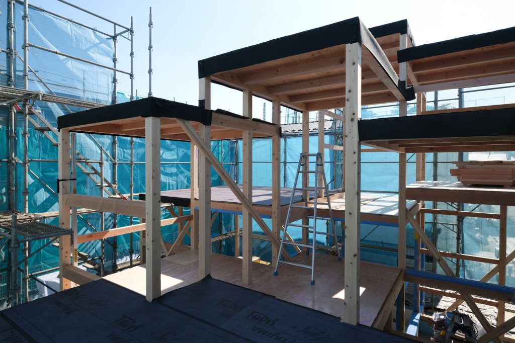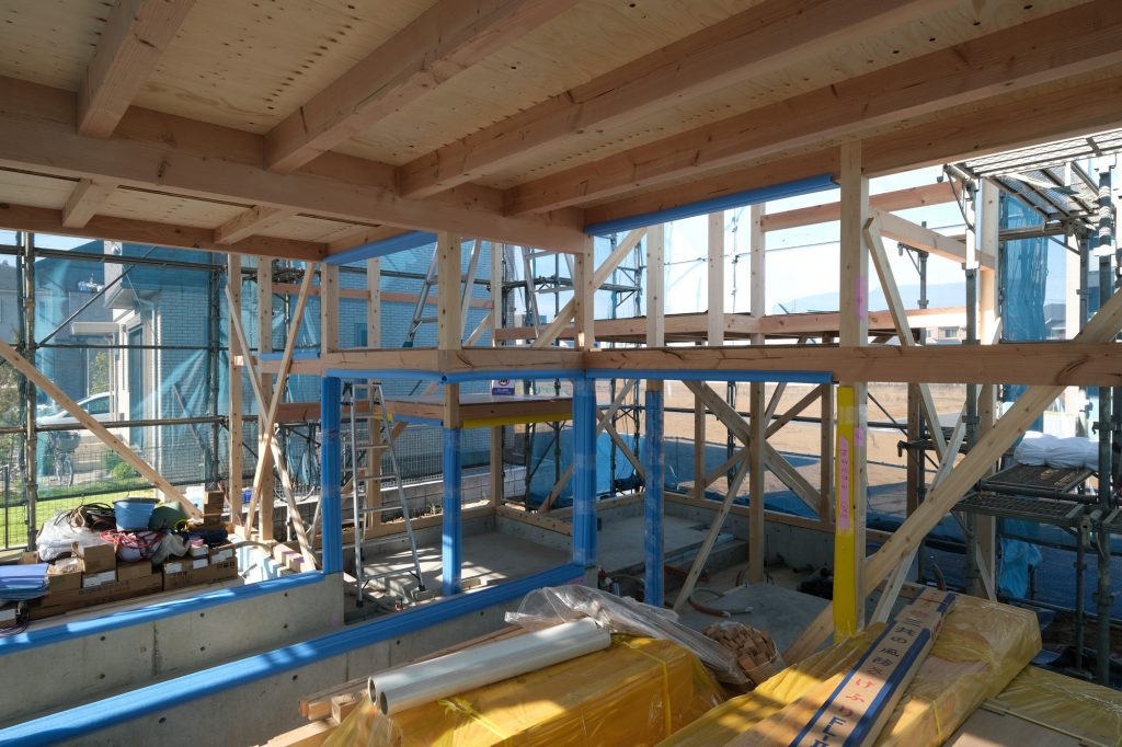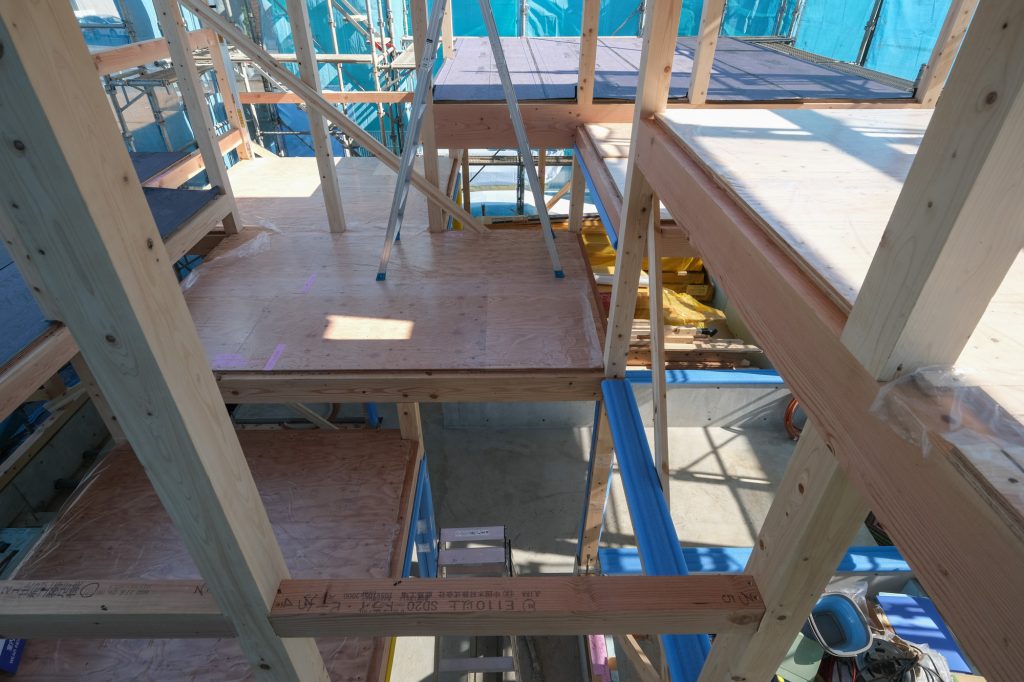 現場監督によると「まだ構造のブレースは入っておりませんが、今の時点で全く揺れないので、とても丈夫な構造ですね。」とのこと。