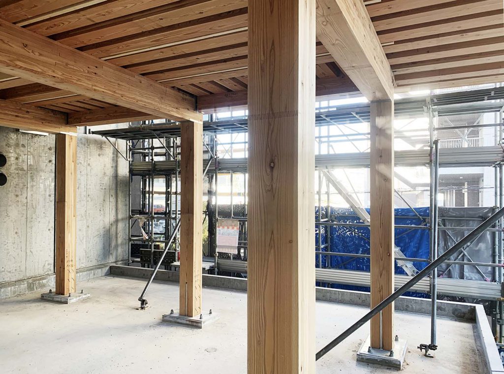 力強い4層の木軸組が立ち上がりました。
