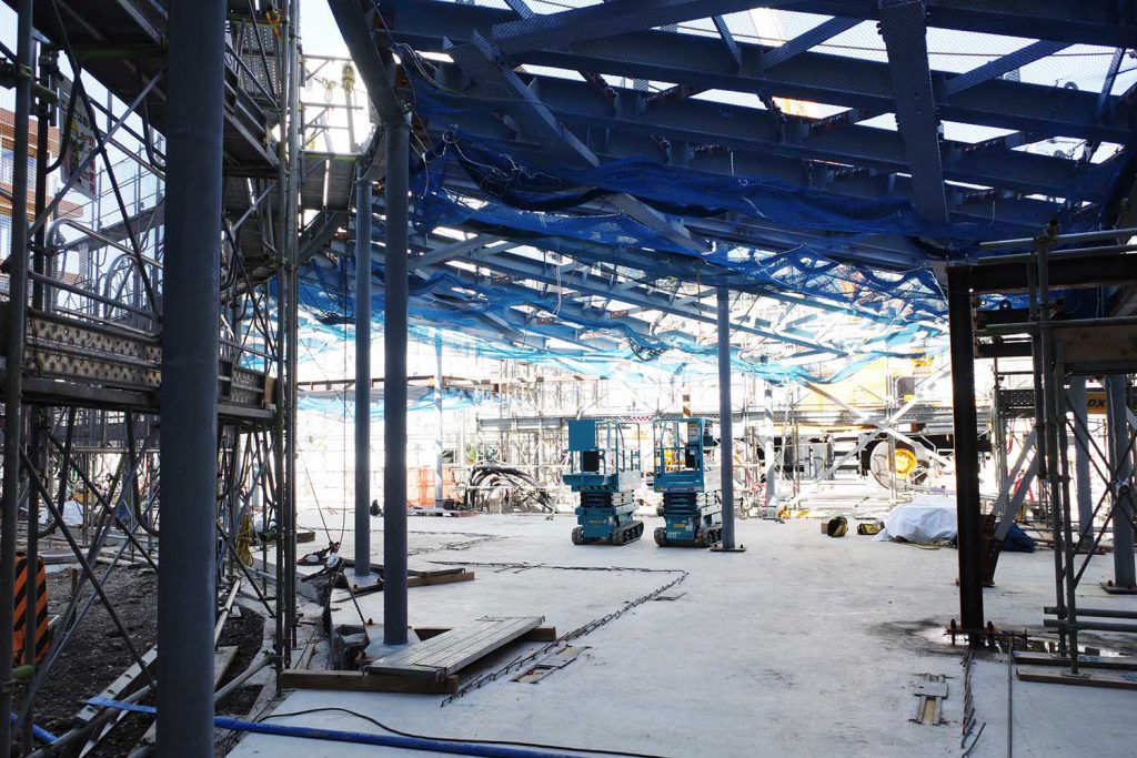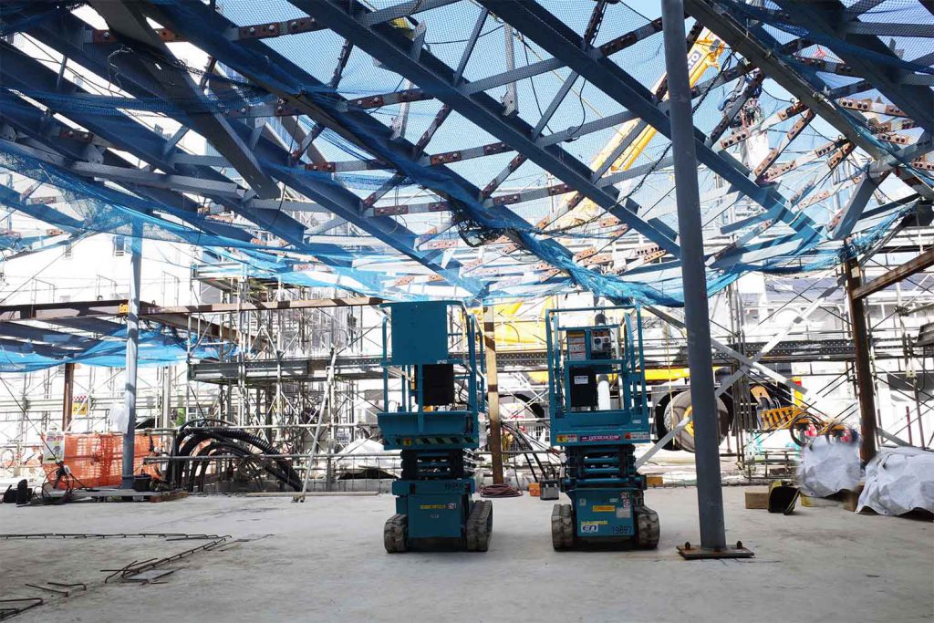 富山の北陸建工;Hグレードの鉄骨ファブによる、鉄骨架構は非常に精度高く仕上がりました。 北陸建工は施工図を3次元で起こす技術を持っており、今回のような複雑な曲面形状屋根架構も、3D施工図で、細かいところまでコントロールすることができます。