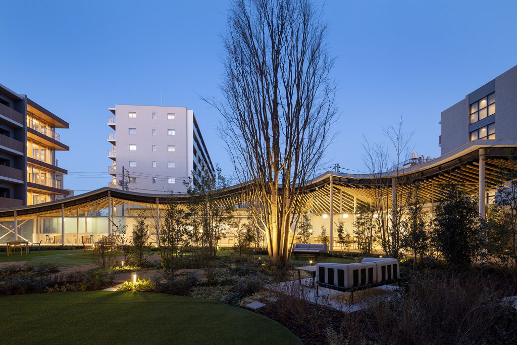赤羽駅から徒歩圏内にある低層、中高層の住宅やオフィスが建ち並ぶ地域に、中庭を中心に賃貸棟、学生棟、社会人棟、カフェテリア棟が配され、1階やその他の階にも多様な共用部が計画された大変興味深い計画である。豊富な共用部があり、多世代の暮らしが近くにあることで、交流が促進したり、子供の自立の芽生えに繋がったり、生活がより良くなる工夫がされている。1階のガラス張りの面は各共用部が視認でき、安心感やほど良い刺激を受けられるだろう。中庭の木々が景観となり柔らかい光で満たされた空間は、自然発生的な会話や交流が生まれるかもしれない。そんな可能性が創造できるこの建築での暮らし方や体験を積極的に応用することで、他の地域での展開も期待されるところである。