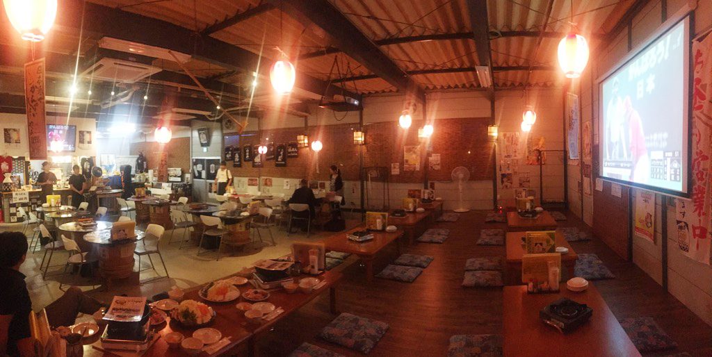午後からの予定であった授業を、急遽懇親会会場であった居酒屋で行いました(笑)。
